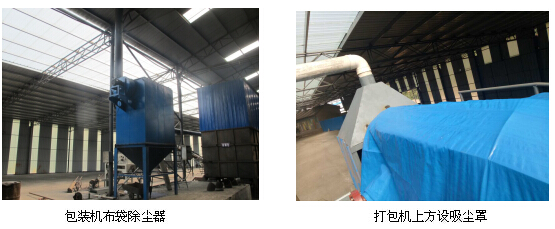 冷卻后的型煤經(jīng)自動包裝機打包后,輸送至成品車間儲存待售。包裝過程中會產(chǎn)生一定量的粉塵,在包裝機上方設集塵罩和吸塵管,收集后經(jīng)布袋除塵器處理后排放。