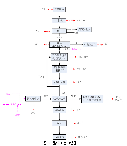 產(chǎn)品方案:本項目生產(chǎn)的型煤規(guī)格為直徑為60mm,厚度為36mm,發(fā)熱量為5800千卡/千克,約為24.36 MJ/kg。
