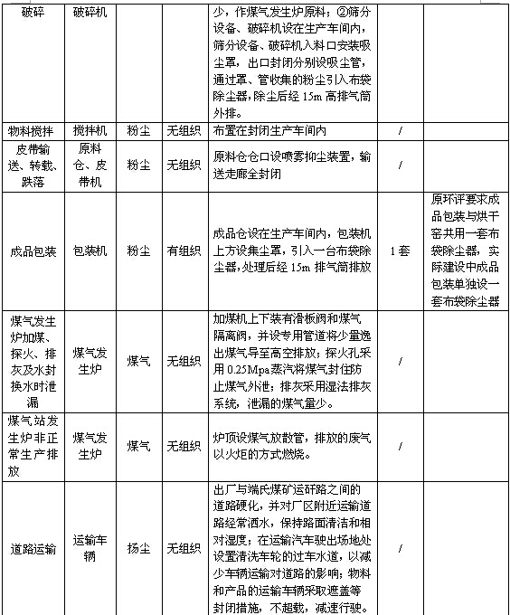 本項目使用原料末煤均外購自周邊煤礦,由貨車運輸至全封閉原煤堆場內(nèi),由鏟車將原煤送入給料機,通過皮帶輸送至篩分機,粒徑≥1cm的原煤堆至塊煤堆場,供煤氣發(fā)生爐使用,粒徑≤1cm的原煤進入錘式破碎機破碎。