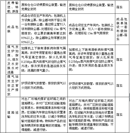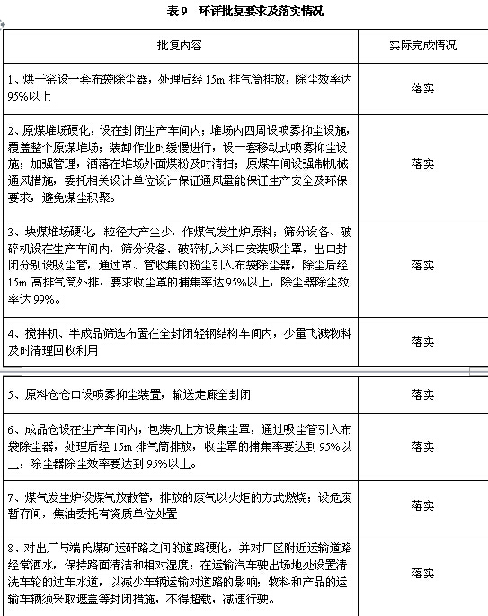 2016年9月委托晉城市綠和環(huán)保技術咨詢有限公司編制了《沁水縣誠友型煤有限公司年產(chǎn)10萬噸型煤項目環(huán)境影響報告表》,報告表中要求的主要環(huán)保措施及落實情況如下: