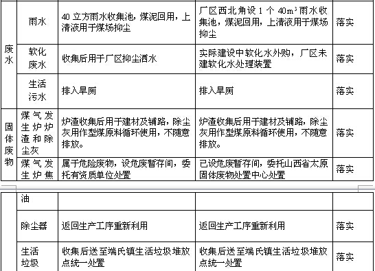(1)要求盡快完成軟化水處理裝置的建設。對出廠與端氏煤礦運矸路之間的道路進行全部硬化。加強廠區(qū)綠化工作。