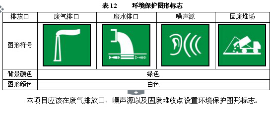 根據(jù)《環(huán)境保護圖形標志排放口(源)》(GB15562.1-1995)及《環(huán)境保護圖形標志固體廢物貯存(處置)場》(GB15562.2-1995)中有關規(guī)定,在廠區(qū)內(nèi)“三廢”及噪聲排放點設置標志牌,標志見下表: