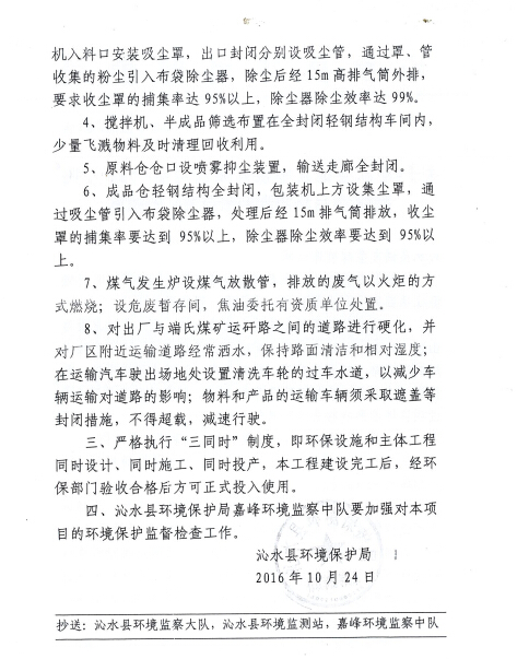 2016年10月24日,沁水縣環(huán)境保護局以沁環(huán)審[2016]85號文對該項目環(huán)境影響報告表進行了批復。